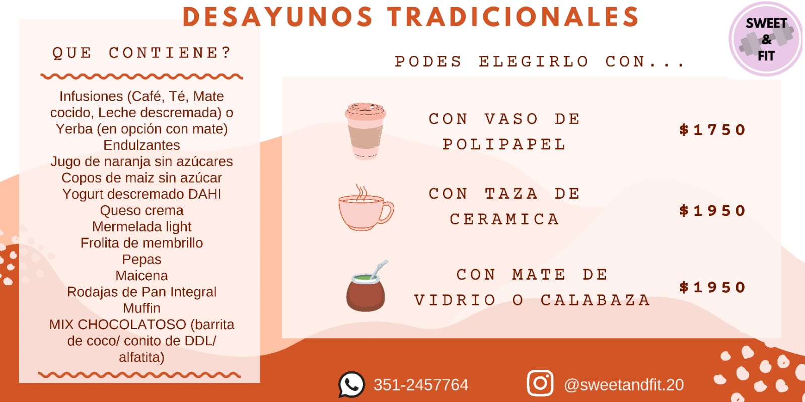✔ Infusiones (Café, té, mate cocido y leche en polvo)